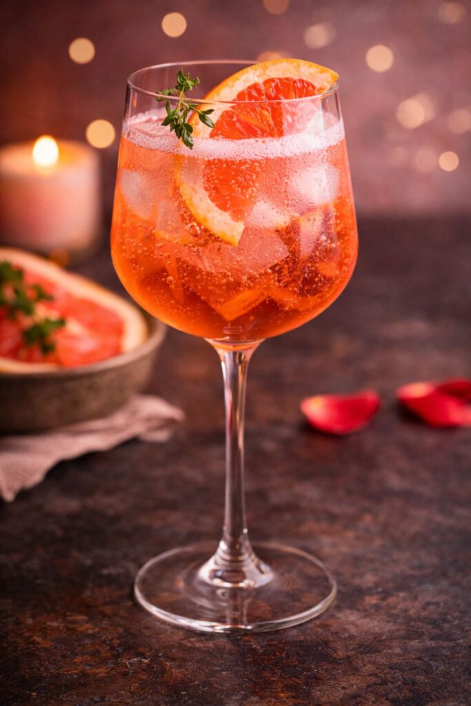 Sirve directo en copa amplia con hielo y completa con mineral. Refrescante y ligero, ideal para conversaciones largas.