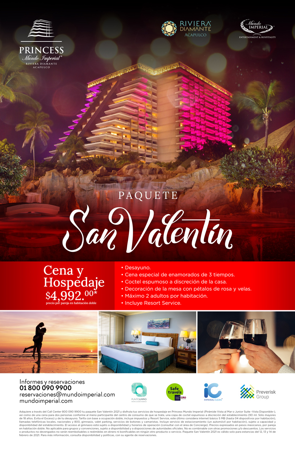 Es importante mencionar que los hoteles cuentan con el programa Imperial Clean, que está basado en normativas turísticas internacionales y nacionales, que funcionan como guía y son una herramienta e instructivo para el uso correcto de los mismos en las empresas o centros de trabajo del sector turístico frente a la situación producida por el coronavirus (Covid-19), esto con el objetivo de mantener un ambiente de protección, goce y bienestar para los huéspedes y comensales.