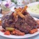 La combinación de vino tinto y especias crea un fondo intenso y ligeramente especiado que define este estofado como una receta de profundidad, perfecta para comidas largas y sabores que se construyen sin prisa.