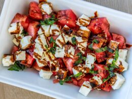 5. Rectifica la sazón con sal y pimienta blanca al gusto. Agrega las piezas de pollo a la salsa y sirve caliente, decorando con piñones blancos, ligeramente tostados, y mitades de uvas sin semilla.